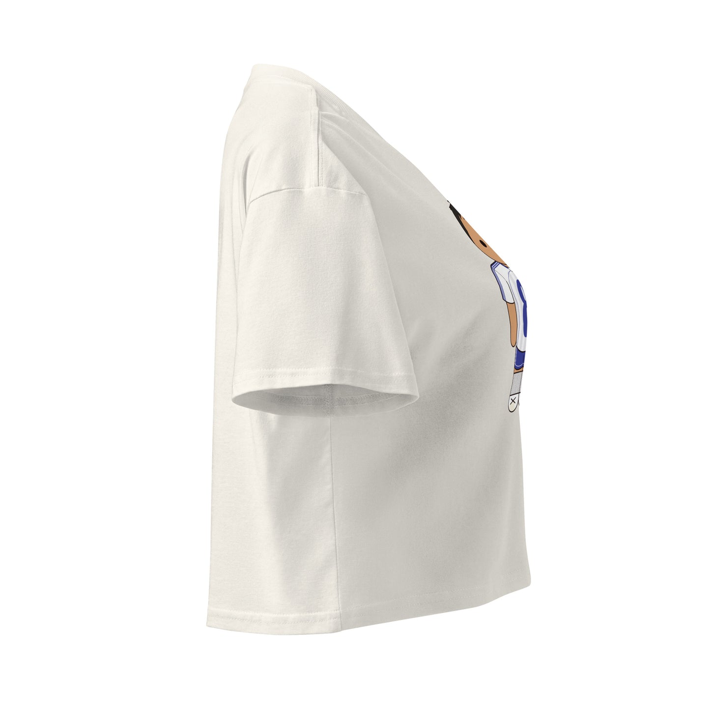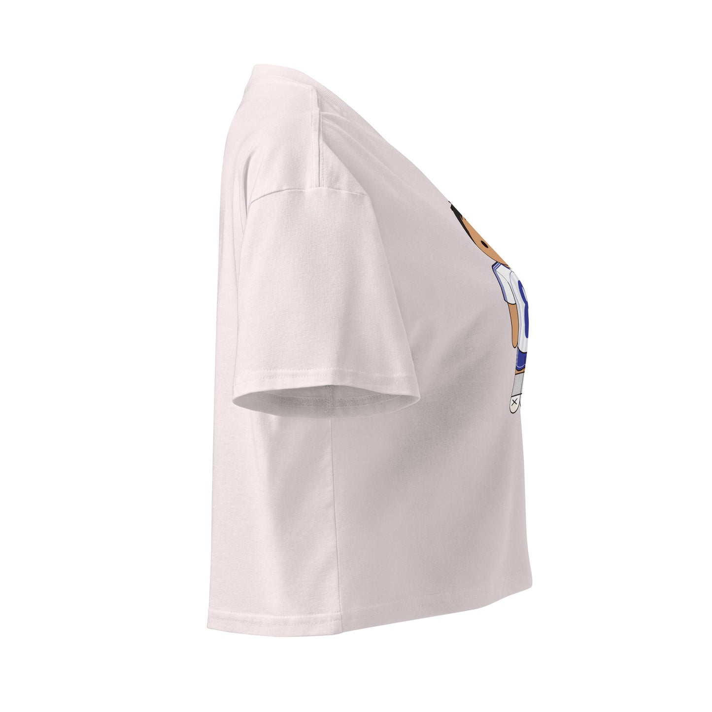 This crop top is made of 100% combed cotton, which makes the shirt extremely soft and more durable than regular cotton shirts. The relaxed fit and dropped shoulders ensure comfortable wear, while the cropped length makes it perfect for spring and summer.