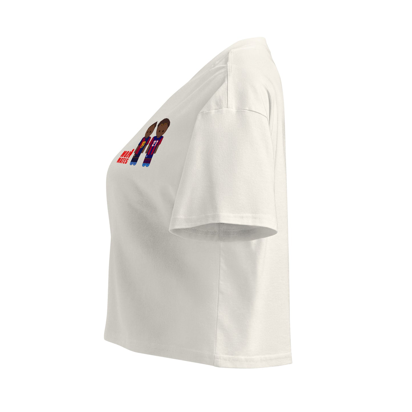 This crop top is made of 100% combed cotton, which makes the shirt extremely soft and more durable than regular cotton shirts. The relaxed fit and dropped shoulders ensure comfortable wear, while the cropped length makes it perfect for spring and summer.