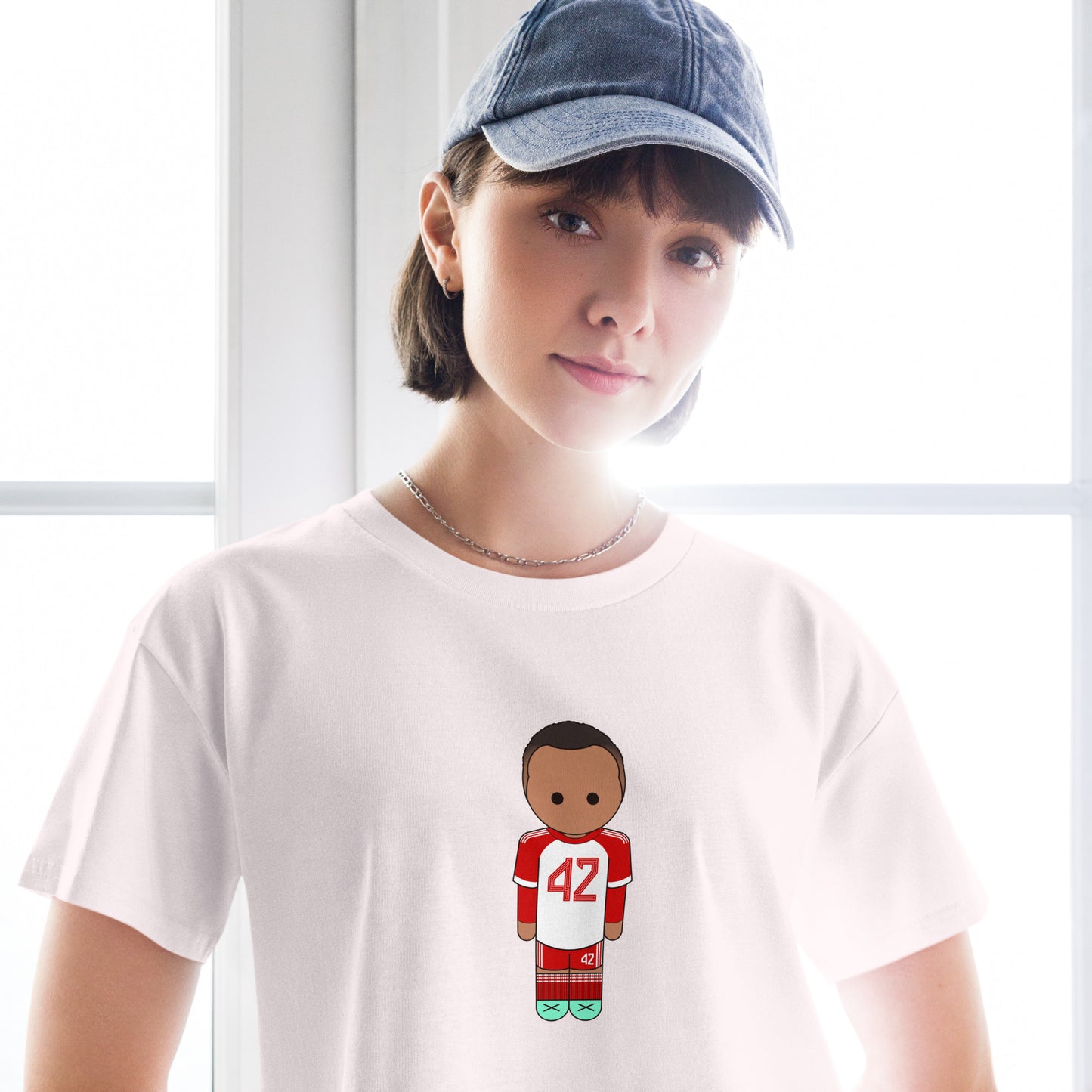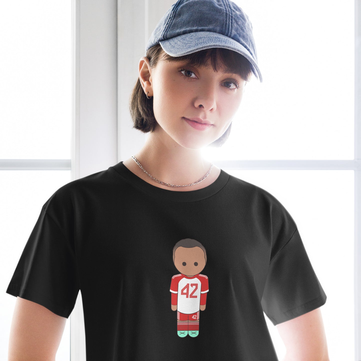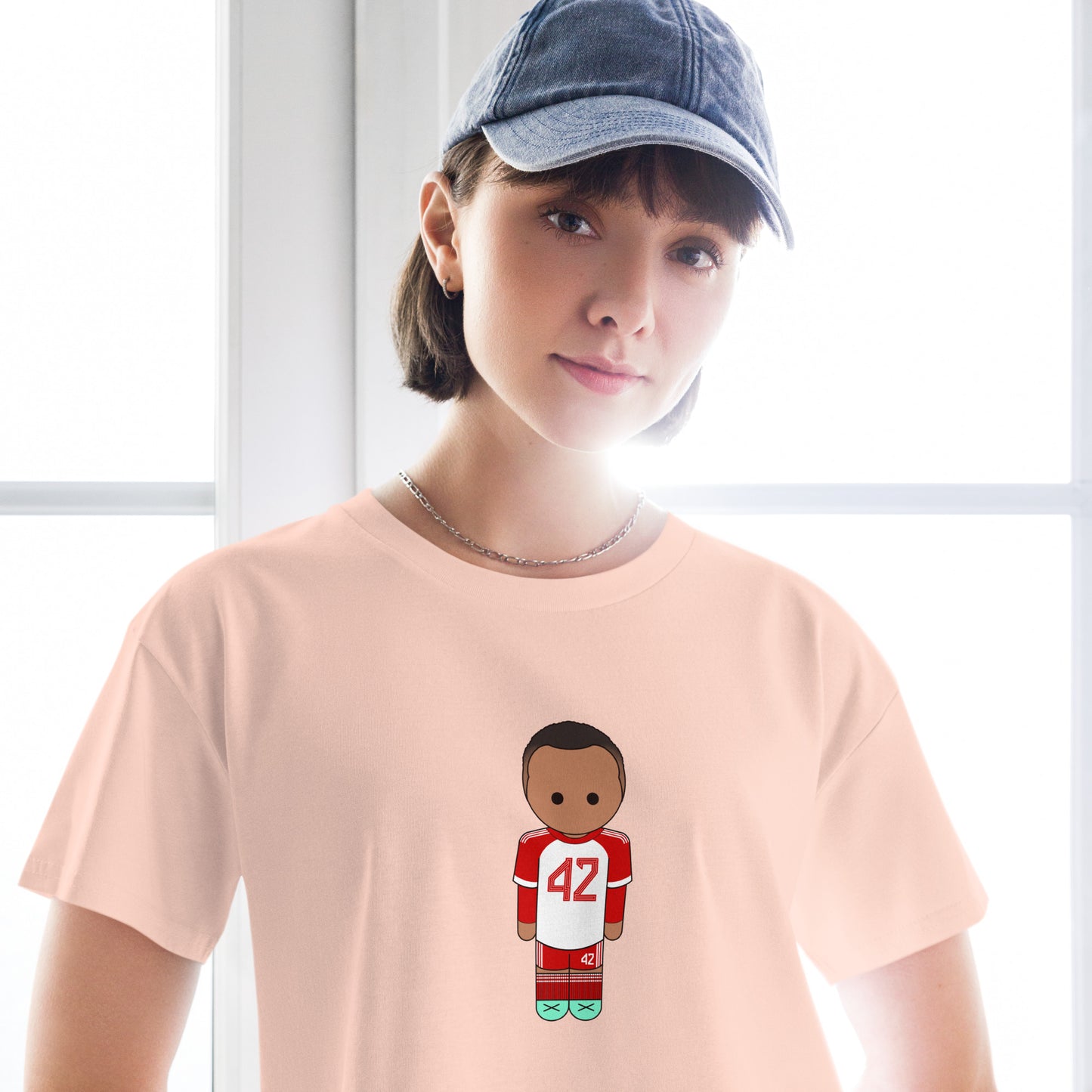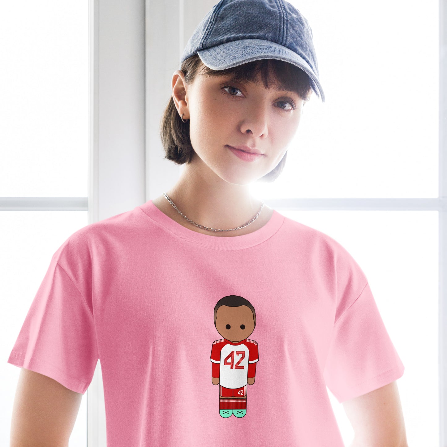 This crop top is made of 100% combed cotton, which makes the shirt extremely soft and more durable than regular cotton shirts. The relaxed fit and dropped shoulders ensure comfortable wear, while the cropped length makes it perfect for spring and summer.