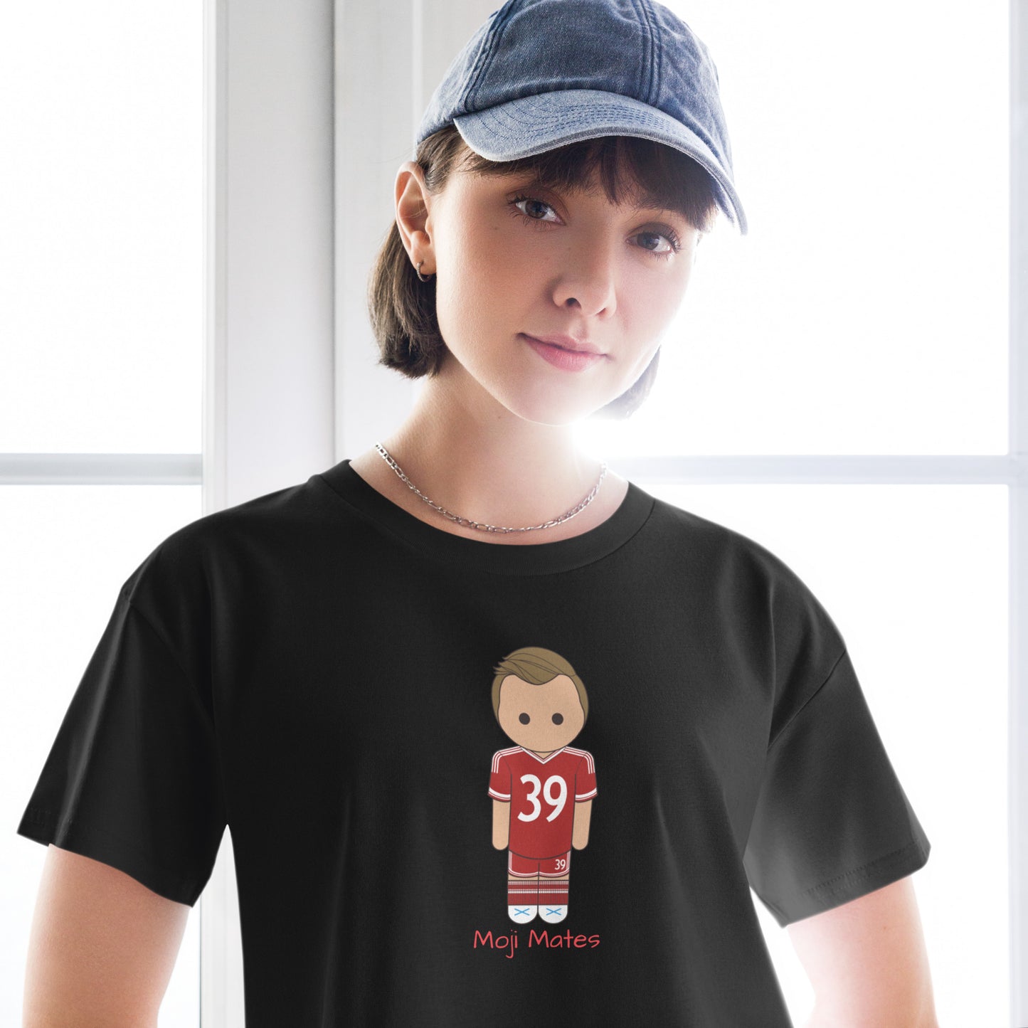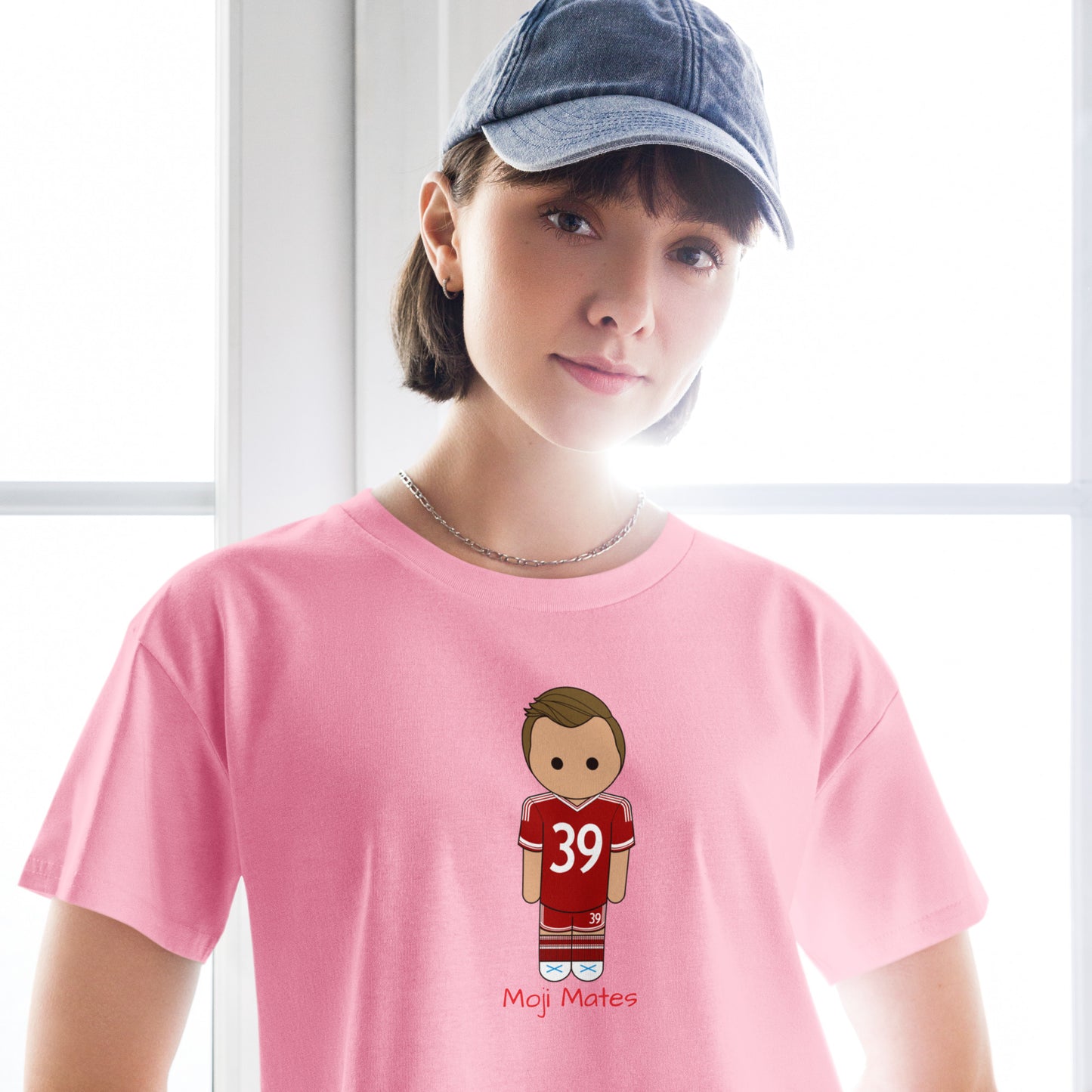 This crop top is made of 100% combed cotton, which makes the shirt extremely soft and more durable than regular cotton shirts. The relaxed fit and dropped shoulders ensure comfortable wear, while the cropped length makes it perfect for spring and summer.